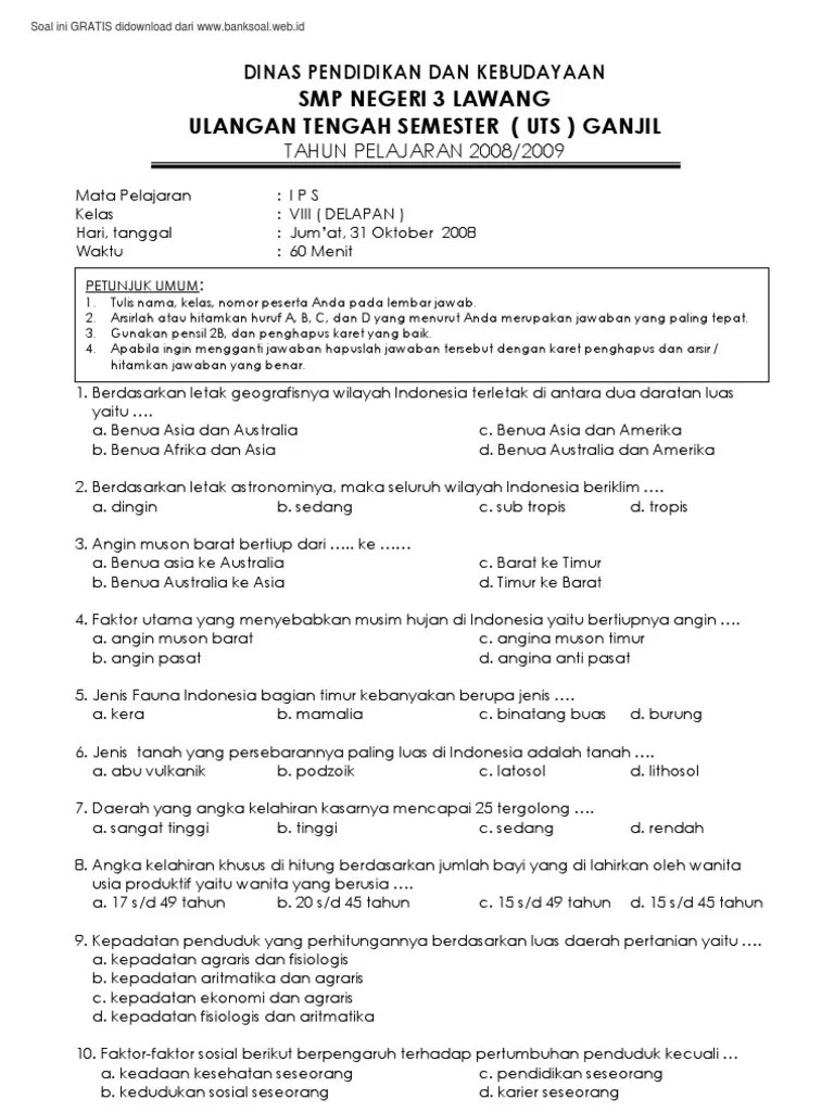 Kunci jawaban ips kelas 8 ilmu pengetahuan sosial buku siswa kurikulum 2013 edisi revisi 2017 kelas 2 smp mts soal dan jawaban ips. Kali ini adalah penilaian harian kedua pada mata pelajaran ips kelas 8 kurikulum 2013 revisi 2017 yang akan dilaksanankan sekitar bulan nopember . Berikut di bawah ini, soal pilihan ganda ips smp/mts kelas 8 semester gasal kurtilas edisi revisi dilengkapi kunci jawaban dengan pertanyaan dimulai dari nomor . Rangkuman pkn kelas 9 semester 1 kurikulum 2013 bab 1 bab 4 kelas x hubungan struktural dan fungsional. Soal ips kls 8 semester 2.